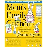 The calendar that keeps the whole family running on time and on track, Mom's Family Calendar is the perennial bestseller that moms-and dads, too-rely on, season after season. Running a full 17 months, it combines the organizational powers of a planner with Sandra Boynton's lovable, colorful animal characters, who frolic and cavort through each grid. The grids run vertically, with five columns across the top (one for each family member) and the days of the month running down the left-hand side. Write in each person's activities for each day, and at a glance, it's easy to see who's doing what, where, and when. Includes a drop-down storage pocket, 500 stickers, and a write-on, wipe-off magnetic phone list to hang on the fridge. It's total family organization, Boynton style.